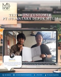 Portofolio jasa perizinan PT Nusantara Depok Mulia menampilkan berbagai proyek perizinan dan kajian teknis bangunan. Selain itu, setiap pekerjaan diselesaikan sesuai regulasi dan standar teknis yang berlaku.